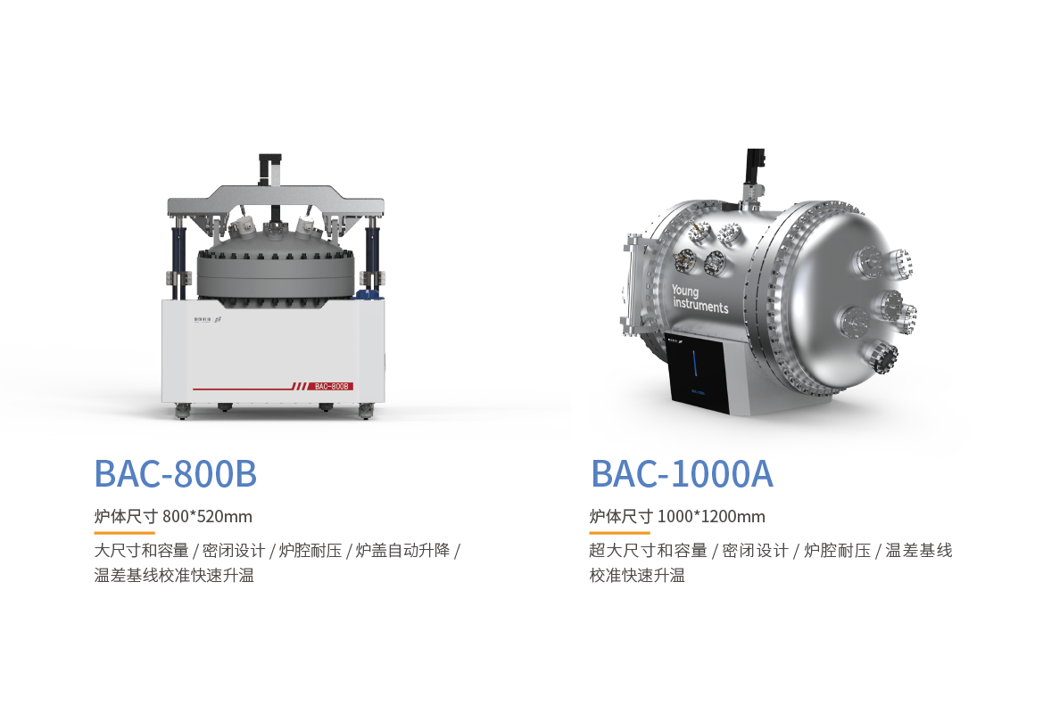 隨著鋰電池行業(yè)的發(fā)展,電芯朝著大尺寸、大容量和高比能量的趨勢發(fā)展,對(duì)電池?zé)岚踩珳y試設(shè)備提出了更高的要求。傳統(tǒng)電池ARC因腔體體積小、抗爆性/耐壓性不足、不兼容熱失控產(chǎn)熱和產(chǎn)氣過程同步分析等缺點(diǎn),已無法滿足大尺寸刀片電池、大容量高鎳三元電池和鋰金屬全固態(tài)電池等未來主流電池的測試需求。仰儀科技從市場需求出發(fā),針對(duì)現(xiàn)有電池絕熱儀器的應(yīng)用限制,2023年推出了BAC系列全尺寸大型電池絕熱量熱儀。