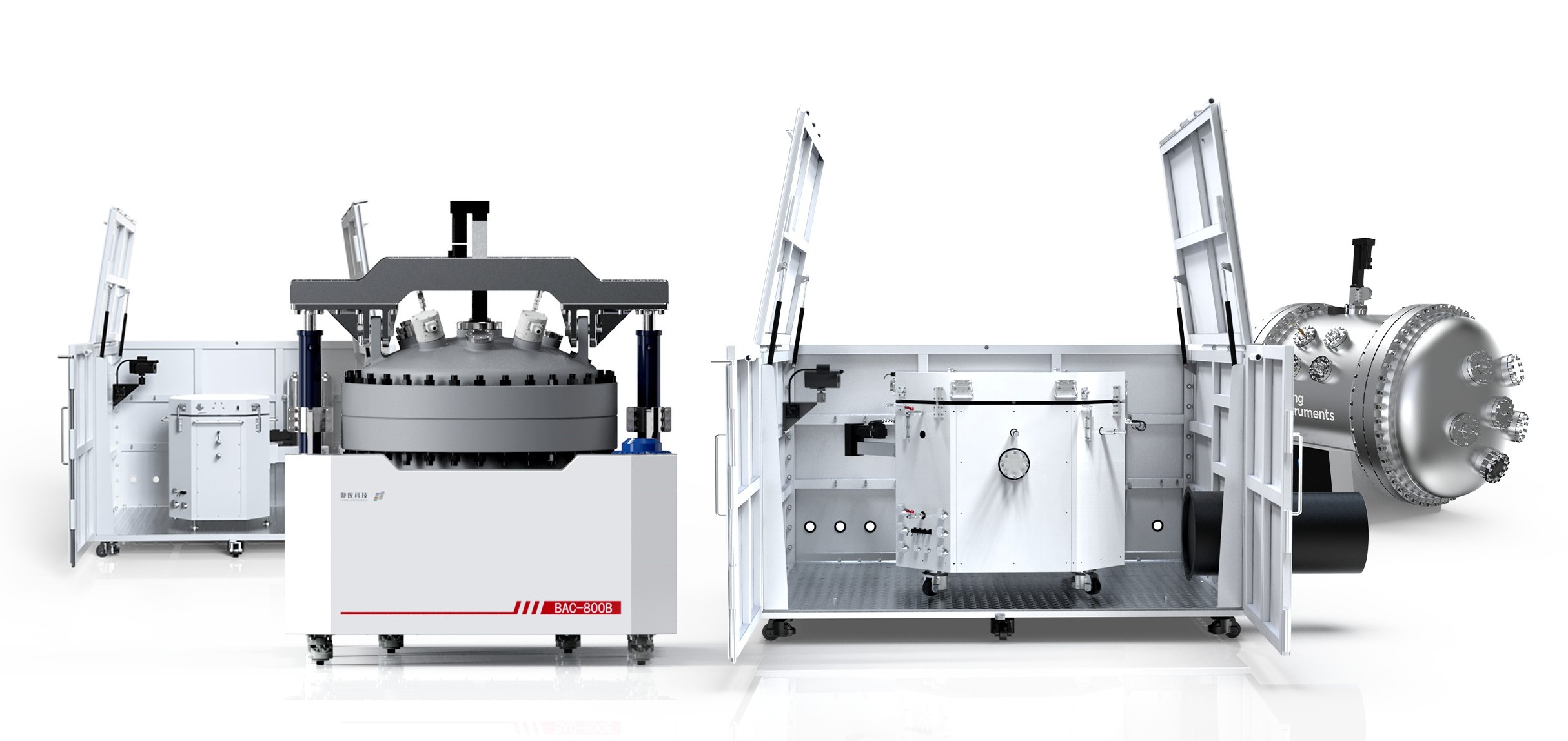產(chǎn)品型號(hào)包含BAC-800B和BAC-1000A,密閉型爐腔完全按照GB/150壓力容器設(shè)計(jì)規(guī)范進(jìn)行開發(fā),可持續(xù)承壓2MPa,同時(shí)具有優(yōu)異的密封性,創(chuàng)造性地將定容燃燒彈和ARC功能合二為一,無需配置密封罐即可同步完成大尺寸、大容量電芯熱失控特征溫度及產(chǎn)氣測試,進(jìn)一步提高試驗(yàn)的效率和可靠性。另外,通過腔體可調(diào)式泄壓設(shè)計(jì),解決了國外某廠商絕熱儀器存在的腔體和電池表面溫差大,絕熱性能不佳的問題。