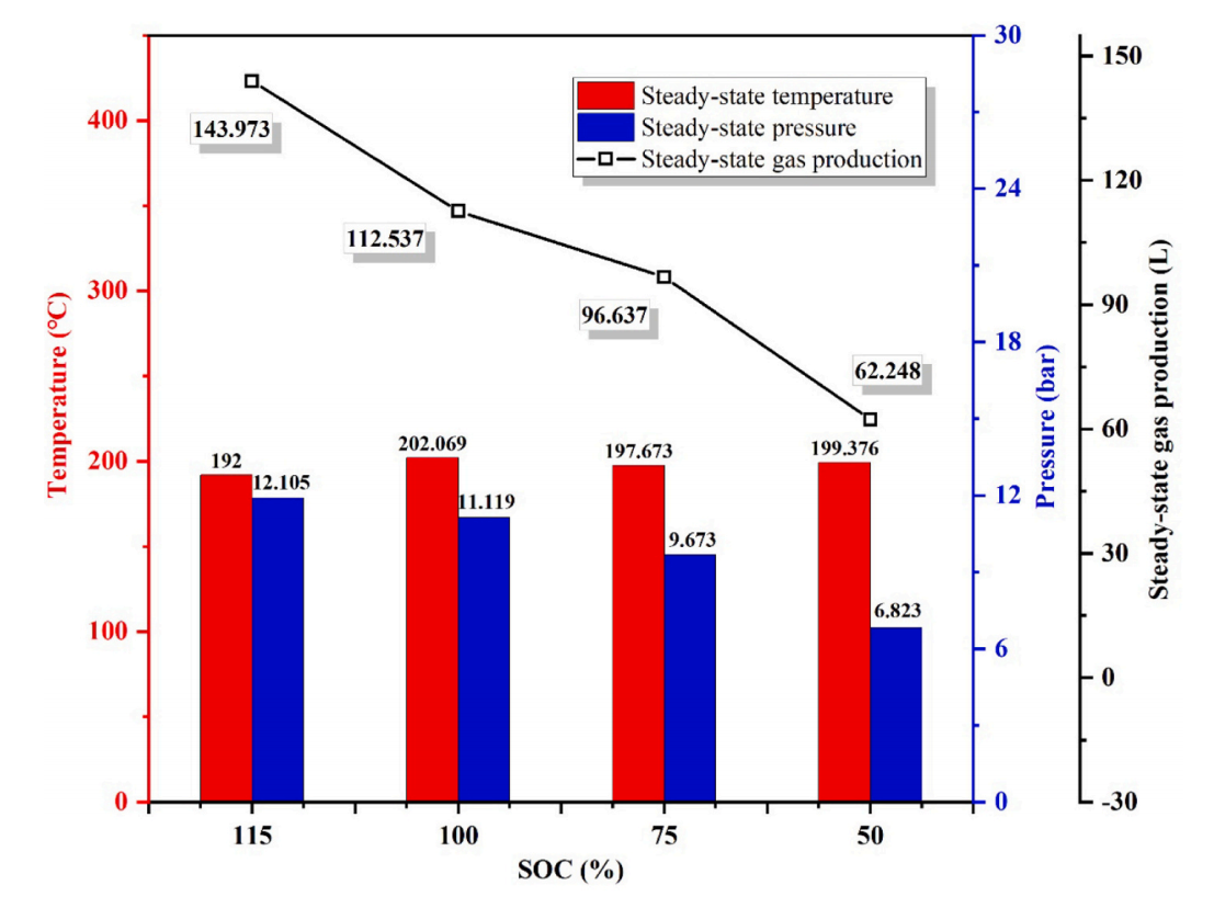 圖6 不同SOC電池熱失控產(chǎn)氣量